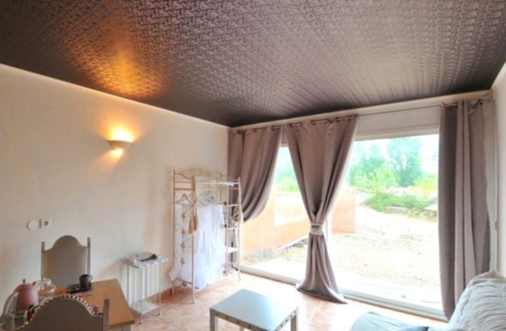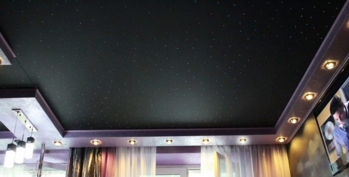 - Черен таванът е най -подходящ в зали и коридори. Зала с такъв таван ще прилича леко на кино..