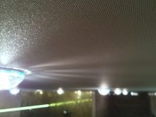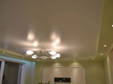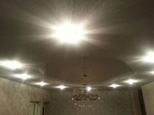 Тук можете да видите сложна осветителна система, която се състои от различни видове осветителни тела. Този пример ясно показва лъскавия ефект, който имат таваните от тъкани. Той не е толкова ясно изразен, както в случая с филма, той е заглушен и ненатрапчив..