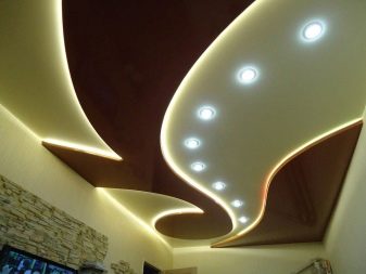 Такива опънати тавани ще бъдат идеални както за просторни, така и за малки пространства. Те ще подчертаят оригиналността на интериора, ще направят стаята по -светла и визуално по -обемна..
