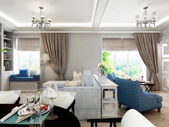 - Ярки нюанси. Светлата палитра е най -доброто решение за компактни помещения. Такива цветове не само визуално ще увеличат размера му, но и ще наситят стаята със светлина, правейки атмосферата по -лека и свежа. Такава палитра ще бъде доста подходяща в класически и модерни посоки..