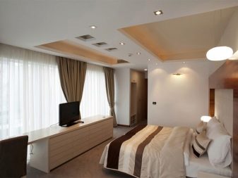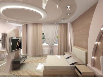Ако размерът на стаята позволява, можете да подредите двуетажен или многостепенен таван в стаята..