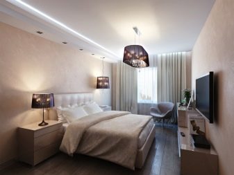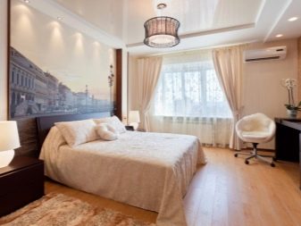 - Спалня. Мир, релакс и спокойствие трябва да царуват в спалнята. Дизайнерите силно препоръчват да изберете светли, неутрални и спални тонове. Честа палитра е бежово, кремаво, люляково, нежно розово, небесно синьо, праскова. Ефектът “звездно небе” е много популярен. Ако искате да привлечете внимание към опънат таван, изберете бяла кутия от гипсокартон.