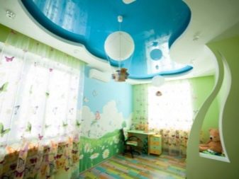 - Деца. За подреждането на стаята на дете или тийнейджър се избират светли цветове, които са в хармония с ярки цветове. Вслушайте се в това правило, когато избирате опънат таван върху конструкция от гипсокартон. Най -популярните наситени цветове са розово, синьо, зелено, оранжево, жълто. Сред светлите цветове е обичайна следната палитра: бяло, светло сиво, бежово, млечно.