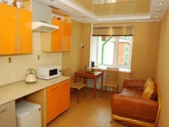 В кухнята най -често се натрупват мръсотия и различни миризми. В тази връзка е препоръчително да се използва филм като опъната тъкан за тази стая. Почистването е много по-лесно от тъканната основа, а филмът практически не съдържа миризми. В спалнята или хола платната от плат ще изглеждат по -хармонично..