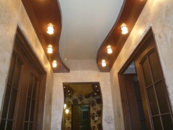 - Коридор. Интериорът на тази част от апартамента създава общо впечатление за къщата. Препоръчително е да направите избор в полза на рамки на едно ниво със светло платно. Цветът на опънатия плат или филм трябва да бъде с няколко тона по -светъл от цвета на довършителните материали и мебелите в коридора.