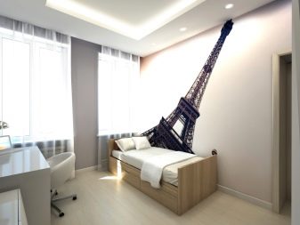 Такива модели са идеални за подреждане на малки детски стаи. За ученици и юноши е препоръчително да изберете един цвят или да комбинирате платна от няколко тона. Оптималният брой цветове на един дизайн е не повече от три.