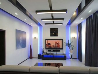 В нишата на рамката за гипсокартон можете лесно да скриете проводниците. Възможно е също така да се монтират осветителни тела с различни размери. В допълнение, кабелната телевизия и интернет кабелите ще бъдат надеждно скрити под декорацията на тавана..