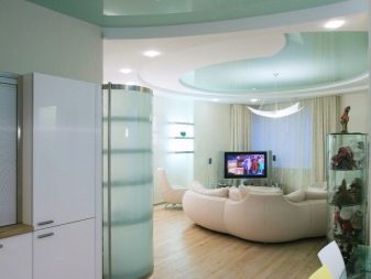 Таваните често се използват като инструмент за зониране. Това ви позволява да използвате пространството възможно най -компетентно и удобно, особено когато става въпрос за малък апартамент или къща. Територията е визуално фрагментирана поради разликата в цвета, дизайна и формата.
