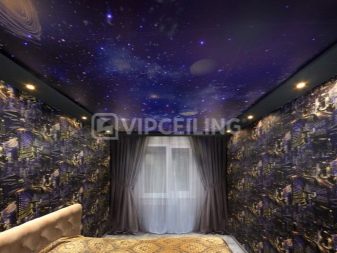 - За да разнообразите интериора, “Vipsiling” произвежда опънати тавани “Starry Sky”, които създават необичайно усещане със специално осветление. За тяхното производство можете да използвате два метода: с пробиване на платното, но в същото време изчезва възможността таванът да не пропуска вода по време на наводнение, а също и без перфорация. Този дизайн ще бъде особено подходящ да изглежда в интериора на детска стая..