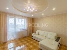 - Така че повърхността на покритието е равна, марката предлага безшевни таванни конструкции. Те ще задоволят всички идеалисти, които няма да се задоволят дори с най -незабележимите шевове, след като зашият няколко платна. Максималната ширина на безшевната мрежа е 5,4 метра, което е достатъчно за повечето модерни апартаменти.