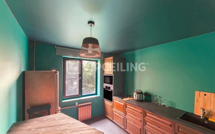 Опънатият таван е мечтата на дизайнера. Когато го купувате, можете да изберете всеки цвят, текстура, да му придадете всякаква форма. Освен това той ще скрие монтираните комуникации, като им попречи да развалят цялостния вид на стаята..
