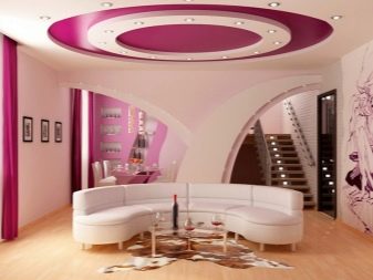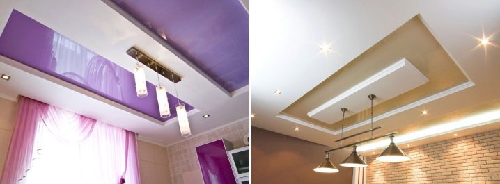 Ако таванът на едно ниво изглежда скучен и обикновен, е възможно да го направите на няколко нива., което често се използва от дизайнерите в интериорния дизайн. Такива конструкции са по -сложни и по -скъпи, но въпреки това те са много популярни, например за подчертаване на отделни зони или инсталиране на специално общо или точково осветление. За създаването на такива конструкции често се използват различни материали и техните комбинации, например с гипсокартон.