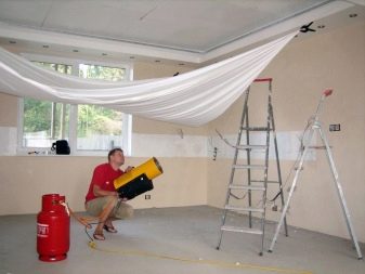 - Малко вероятно е да можете сами да инсталирате опънат таван, ако нямате специално оборудване. Ето защо най -често собствениците наемат специалисти за такава работа..
