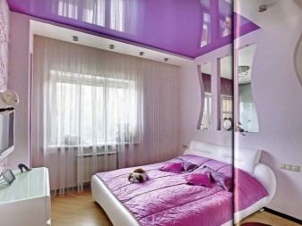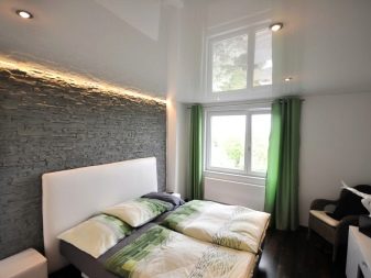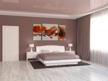Най -често срещаните са лъскави платна.. Иначе се наричат лак. Такива довършителни материали се отличават с красив дизайн., те обаче не се инсталират много често в спалните.. Това се дължи на факта, че естествената светлина, излъчвана от отворите на прозорците, се отразява от огледалната им повърхност..