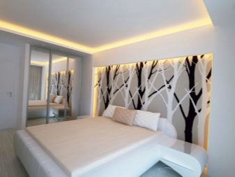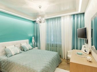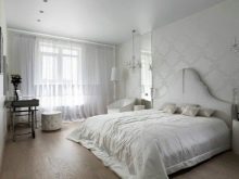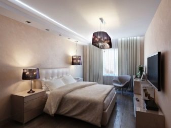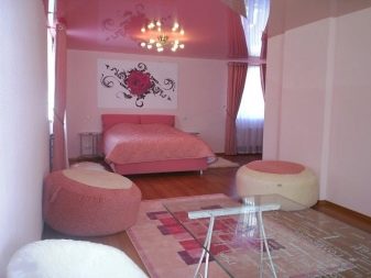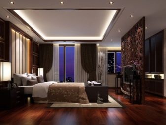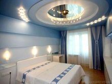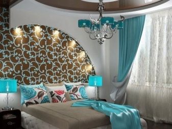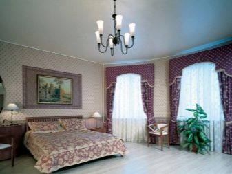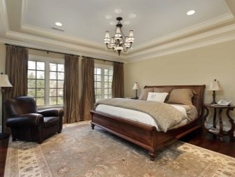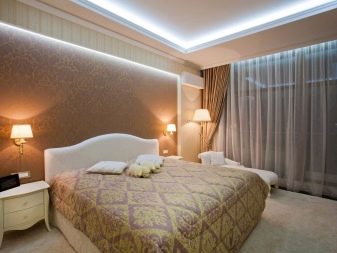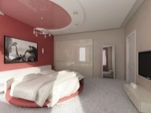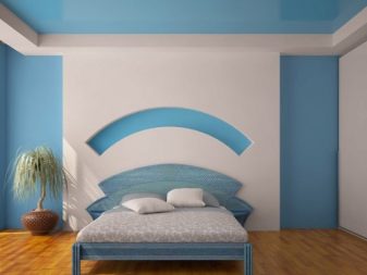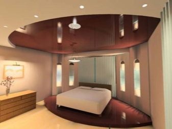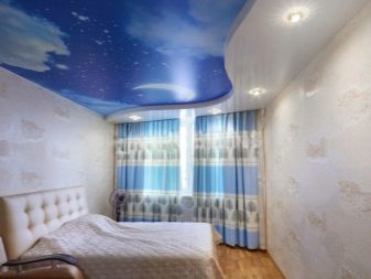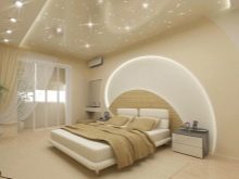 За малка спалня в градски апартамент е по-добре да изберете светли платна и да използвате прости дизайни на едно ниво. За по-просторни зони многостепенният таван също е доста подходящ. Цветът му може да бъде не само пастелен. Основното е, че тя съответства на останалите цветове в интериора..