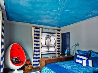 Таваните с анимационни герои няма да работят за стаята на тийнейджър. Тук е по -добре да се даде предпочитание на по -модерни и “възрастни” платна. Това могат да бъдат обикновени опции или красиви филми, изобразяващи звездното небе, космоса, абстракцията.. Потребителите оставят изключително ентусиазирани отзиви за тези оригинални тавани, тъй като изглеждат модерни и нетривиални..