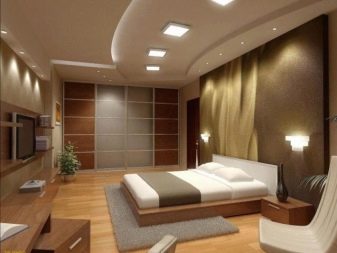 Това е най -простият дизайн, който може да бъде инсталиран в спални с абсолютно всякакъв размер и оформление. Най-често собствениците на апартаменти с ниски тавани се обръщат към такива опции, където не се препоръчва използването на многостепенни кутии..