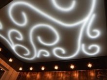 Осветителни устройства могат да бъдат поставени на опънатия таван, както желаете. Те могат да оформят вълнообразни линии от филм или гипсокартон, да се нареждат в кръг, овални или квадратни.