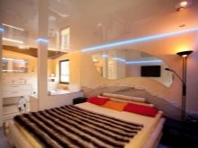 Трябва да се има предвид, че лъскавите таванни филми изглеждат по -органични в съвременните стилистични посоки. Едва ли ще се впишат в класическа обстановка..