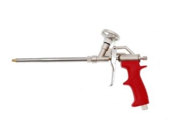 Основната част на пистолета е цевта, която е обикновен кух цилиндър. По краищата му има специални клапани. Бутилката от пяна е прикрепена към адаптера. След това плавно натискаме спусъка, докато държим пистолета. След това монтажният материал започва да тече през фитинга, чийто обем и скорост на подаване могат да се регулират със заключване.
