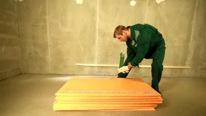 - На гипсови панели съставът се нанася отвътре на ленти с интервал от 15 см и отстъп от края на 5 см. След това панелът се притиска здраво към повърхността и се държи 3 минути.