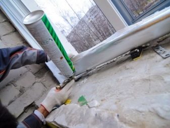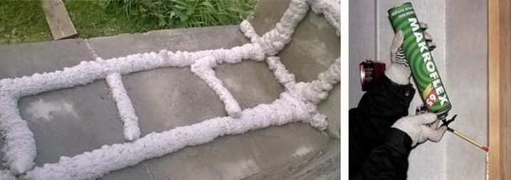 - При монтиране на первази на стъклата и стъпала, пяна цимент се нанася върху фиксиращата част на елемента на 2-3 ленти по ръба. След това детайлът се монтира на място и се притиска с товар по цялата му дължина за поне 1 час..