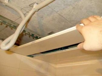 Сглобяването на панелите не е особено трудно за мъжете. Една по една дъската се закрепва с помощта на подготвените отвори. Гладката повърхност ви позволява да скриете дефекти на тавана, както и електрически проводници и комуникации. Ако сте избрали лъскав панел, тогава огледалната равнина визуално разширява стаята и създава усещането, че стаята изглежда по -голяма и по -висока..
