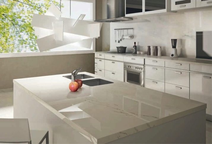 Функционалността на порцелановия камък позволява на плотовете от него да се конкурират с много видове кухненски мебели, изработени от други материали. Плочките стават все по -често срещан материал поради широката гама от цветове, които се предлагат. Познавайки технологията на повърхностни облицовки, е лесно да поставите порцеланови каменни изделия със собствените си ръце, дори ако нямате умения да работите с този вид довършителни работи..