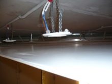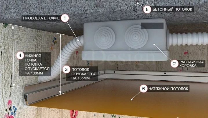 Ако имате опънат гипсокартон или окачен таван, тогава линията трябва да бъде положена вътре в тавана. При негово отсъствие окабеляването се извършва по стените, докато кабелът е положен хоризонтално, разстоянието от тавана е 150 мм.