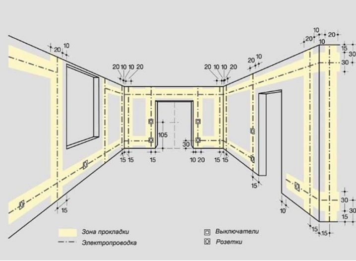 За да улесните работата, схемата на електрическите кабелни линии, както и ключове, контакти и разпределителни табла се препоръчва да се прилага върху повърхността на тавана или стените. Така че няма да пропуснете нищо.
