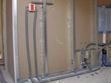 Този метод се използва, ако гипсокартонът е монтиран върху гипсово лепило за монтаж, без да се използва рамка. В този случай пространството под тапицерията ще бъде малко, така че окабеляването и изходните линии трябва да бъдат задълбочени в стената. За това в стената се пробиват отвори за окабеляване..