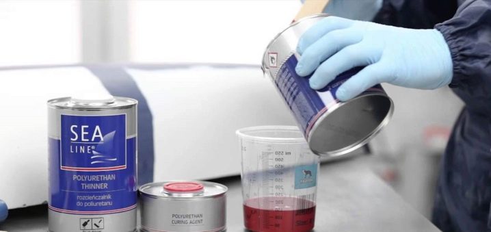 Съставът на полиуретанови състави от първа категория, в допълнение към основните елементи, включва ксилол или толуен. За разреждане на такива материали се произвеждат специализирани разтворители. Агентът достига твърдо състояние поради реакцията на компонентите с влага от въздуха. Следователно времето, необходимо за пълното изсъхване на този вид боя, ще зависи от нивото на влажност в помещението..