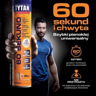 Освен това производителят произвежда пяна за 60 секунди. Това е иновативен материал, предназначен за бързо и лесно сглобяване на строителни продукти. Използва се за лепене на декоративни елементи, керамични плочки, минерална вата, гипсокартон, OSB плоскости, конструкции от газобетон. Лепилото от пяна може да залепи продукта за 1 минута. Такъв материал е лесен за използване и универсален. Може да се използва при ниски температури или висока влажност. Лепилото се нанася с пистолет. Пълната полимеризация на нанесената маса настъпва за един ден.