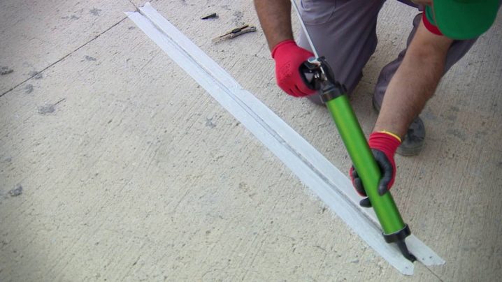 За да изравните нанесения материал, ще ви трябва свързване на стомана или дървен материал. Основата трябва да придобие L-образна форма. Уплътнителят изсъхва доста бързо, но три часа след нанасянето се превръща в смес, устойчива на отрицателни температури, влага и влиянието на атмосферните валежи. До този момент уплътнителят не трябва да се излага на такива дразнители..