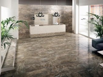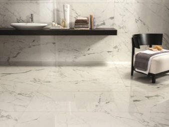 Порцелановият камък от „мрамор“ се отличава с голям брой цветови вариации, уникални шарки. Такива покрития са много красиви. Днес производителите създават материали за плочки, които са по -здрави от естествения мрамор, но в същото време са много подобни на него..