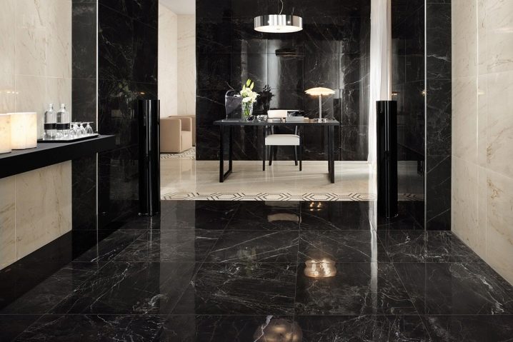 Когато избирате най -подходящия материал, помислете в коя стая ще се използва. Мраморните шарки изглеждат добре навсякъде и винаги, но техническите характеристики на покритието, устойчивостта на износване и издръжливостта също играят важна роля. За салон, търговски център е по -добре да изберете плоски или матови плочки, защото такива продукти са устойчиви на значителни натоварвания.
