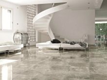 В други помещения “мраморни” плочки от този цвят могат да се използват за украса на колони, стълбища. Белият цвят е подходящ за различни интериори, придава им известна тържественост.