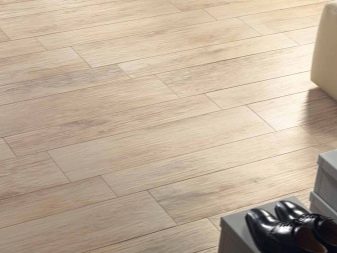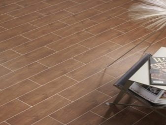 Много производители използват тънък слой от естествено дърво за ламиниране на керамични плочки от порцелан, тези видове не са по-лоши от дървени подови настилки, висококачествен ламинат или благороден паркет.