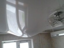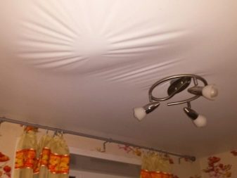 В този случай е напълно възможно да поправите ситуацията сами, тъй като трябва само да източите водата, която се е концентрирала в пространството за прегъване. Това може да стане през отворите за прожектори, но само след като стаята се изключи. Веднага щом се отървете от водата, таванът на светопропускащия филм ще се върне към първоначалния си вид, но има изключения.