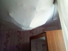 - Различни причини могат да провокират отпускането на опънатия таван. Това може да бъде наводнение от съседи отгоре, отпадане на старо покритие, отклонение на профила от стената или оптималната степен на провисване, причинена от естествени причини..