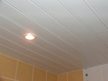 - Таванът от пластмасови ламели се е доказал добре., тъй като е евтин и по никакъв начин не отстъпва на предишните варианти (по отношение на външните характеристики). Материалът не се страхува от влага, но е опасен за пожар и поддържа горенето. Следователно инсталирането на пластмасов таван не е възможно навсякъде. Например, в кухнята (под влияние на постоянно изпаряване и висока температура) материалът губи своята привлекателност и започва да избледнява.