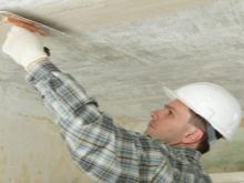 - На първия етап от работата в помещението, където се планира да се монтира таванът, трябва да се извърши ремонт и повърхността на плочите да се подготви за облицовка. За да направите това, почистете основата от старото покритие и запечатайте големи пукнатини с мазилка. След това трябва да съберете всички мебели и неща в стаята: те могат да бъдат изнесени в друга стая или покрити с фолио.