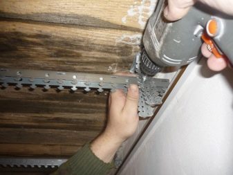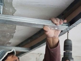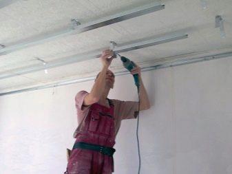 - След това трябва да сглобите направляващите профили и да маркирате местата за фиксиране на окачванията. Окачванията трябва да се монтират по такъв начин, че разстоянието между траверсите да е 120 см. В този случай стъпката между самите окачвания не трябва да надвишава 60 см. Тази технология ще направи конструкцията здрава и надеждна. Траверсите могат да бъдат монтирани към окачването с помощта на дюбели или със специални крепежни елементи, които често са включени в комплекта..