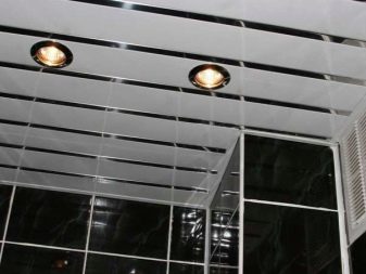Таванните решетки често се монтират в баните. В този случай се препоръчва да изберете композиции, състоящи се от бели и черни цветове. Тази комбинация се счита за класическа и е подходяща за големи и малки пространства..