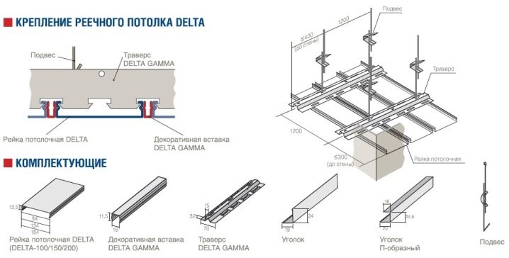 Рамката на системата е сглобена от первази, закачалки и лагерни профили, които са оборудвани със специални канали. Закачалките могат да се използват както с спици, така и с пружини. Що се отнася до первазите, те са U-образни и са предназначени да скрият ръбовете на ламелите и да придадат на тавана красив вид..