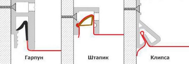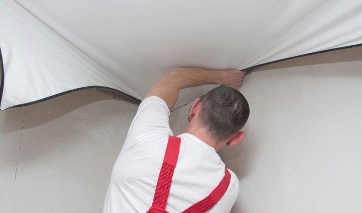 Можете да определите метода на опъване и закрепване на око, например, ако таванът е безшевна конструкция, тогава са използвани пластмасови скоби, които могат лесно да бъдат премахнати без специалисти и фиксирани обратно на място. В тази ситуация самата конструкция не може да бъде премахната без повреди..