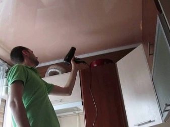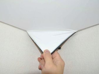 Трето, необходимо е да го изсушите плътно, за това е необходимо да развиете всички електрически уреди, да огънете един от ъглите на платното и постоянно да проветрявате стаята в продължение на няколко дни. След няколко дни на тавана ще се появят гънки, които при по -нататъшно разбор на платното ще бъдат изгладени..