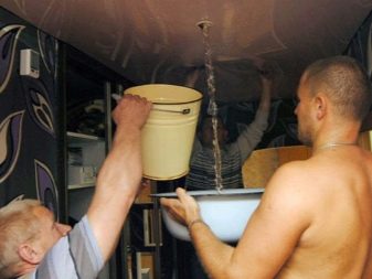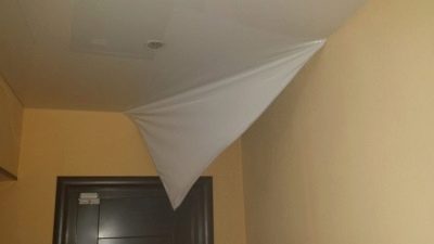 Една от честите причини за премахване на тавана е водният фактор. Съседите забравиха да изключат душа или покривът тече. В тази ситуация е необходимо да се излее цялата вода преди демонтиране и изсушаване на платното..