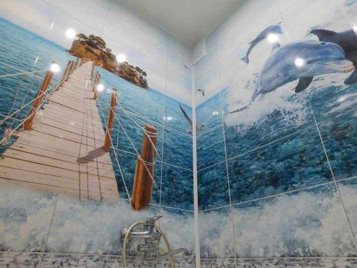 Този тип е особено актуален за интериорната декорация на баня или кухня. Освен това в последния случай е най -добре да изберете само работната зона с панели за плочките..