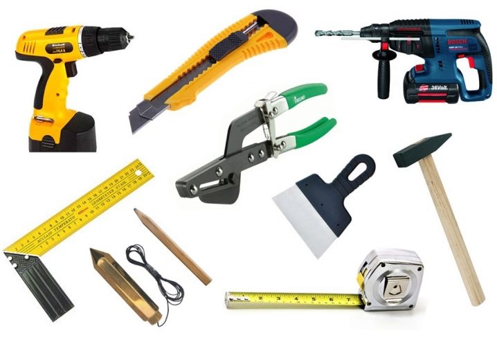 Когато сте решили метода на инсталиране, трябва да продължите с подготовката. На този етап ще ви трябват рулетка, ниво, линийка (за предпочитане метър), молив или маркер, отвертка, бормашина, дюбели, винтове или пирони, телбод, ножовка. Освен това си струва предварително да подготвите битове, свредла, скоби и други консумативи. Ако се погрижите за всичко това предварително, тогава времето за довършване може да бъде значително намалено..